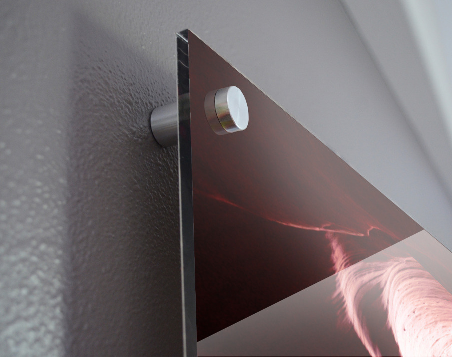 Printed to the edge - Ready to hang - provided with 4 premium polished aluminum stand off ( wall screws and mounting hardware provided )