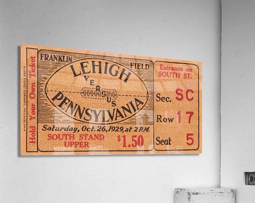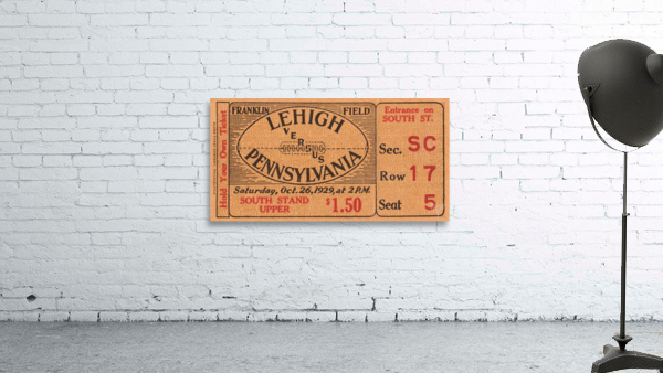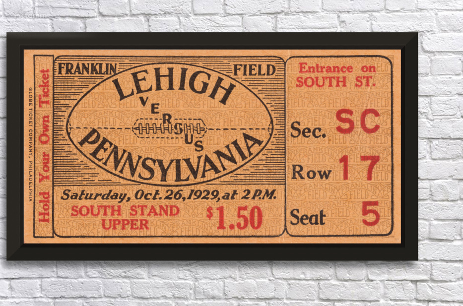 Get this artwork "1929 Lehigh vs. Pennsylvania Football Ticket Print" in a framed print.
