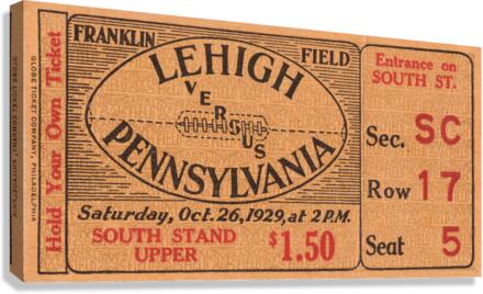 1929 LEHIGH VS. PENNSYLVANIA FOOTBALL TICKET PRINT ROW ONE BRAND  Canvas Print