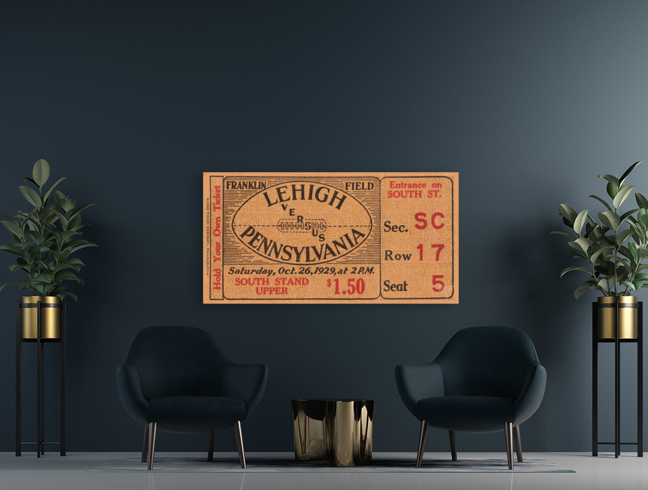 ABOUT THIS ARTWORK: 1929 LEHIGH VS. PENNSYLVANIA FOOTBALL TICKET PRINT