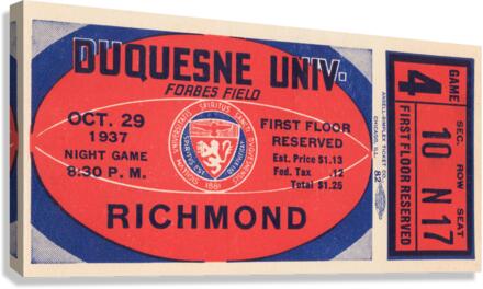 1937 Duquesne Duke vs. Richmond Spiders Ticket Stub Print Canvas print