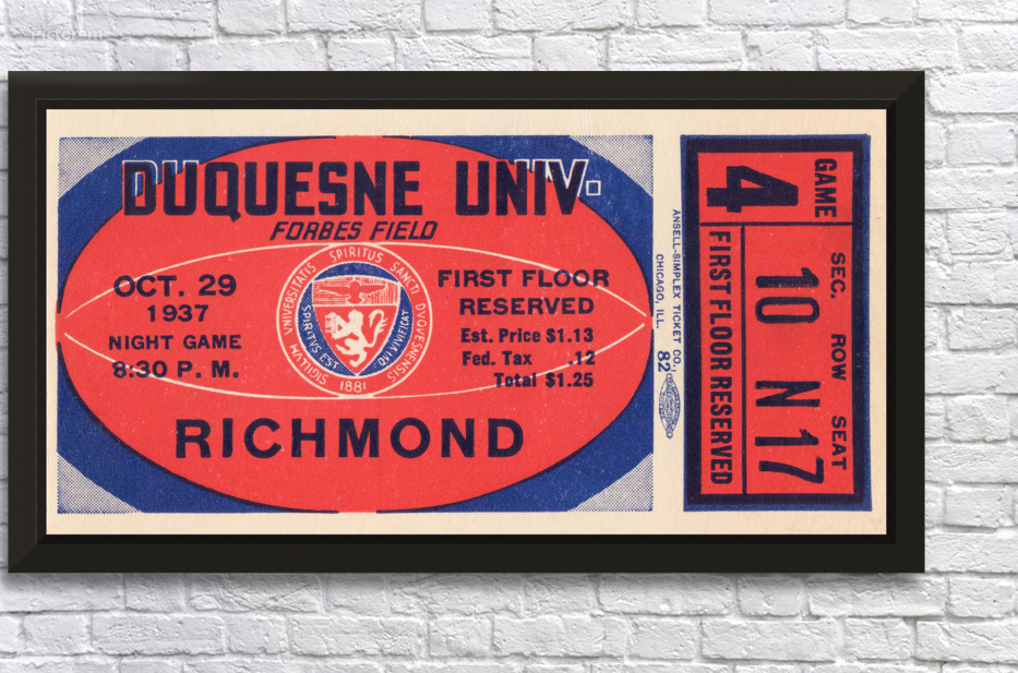 1937 Duquesne Duke vs. Richmond Spiders Ticket Stub Print Picture Frame Printing