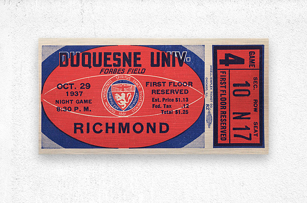1937 Duquesne Duke vs. Richmond Spiders Ticket Stub Print  Wood print