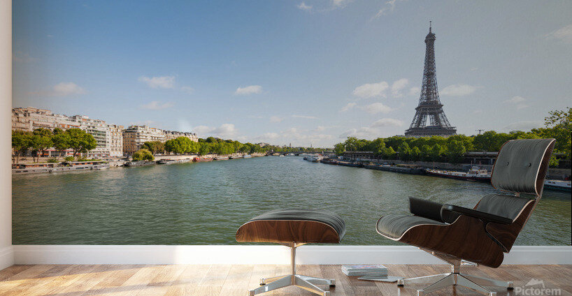 Get this artwork "Paris and Eiffel tower with river Seine in the foreground on a sunny day" in a framed print.