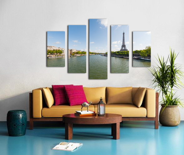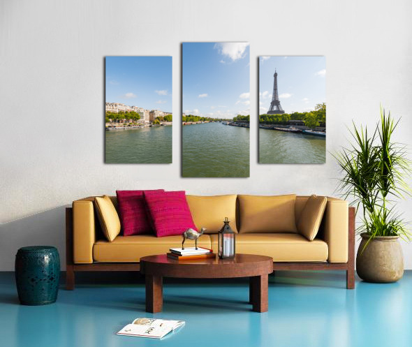 PARIS AND EIFFEL TOWER WITH RIVER SEINE IN THE FOREGROUND ON A SUNNY DAY PHILIPPE LEJEANVRE  Canvas Print