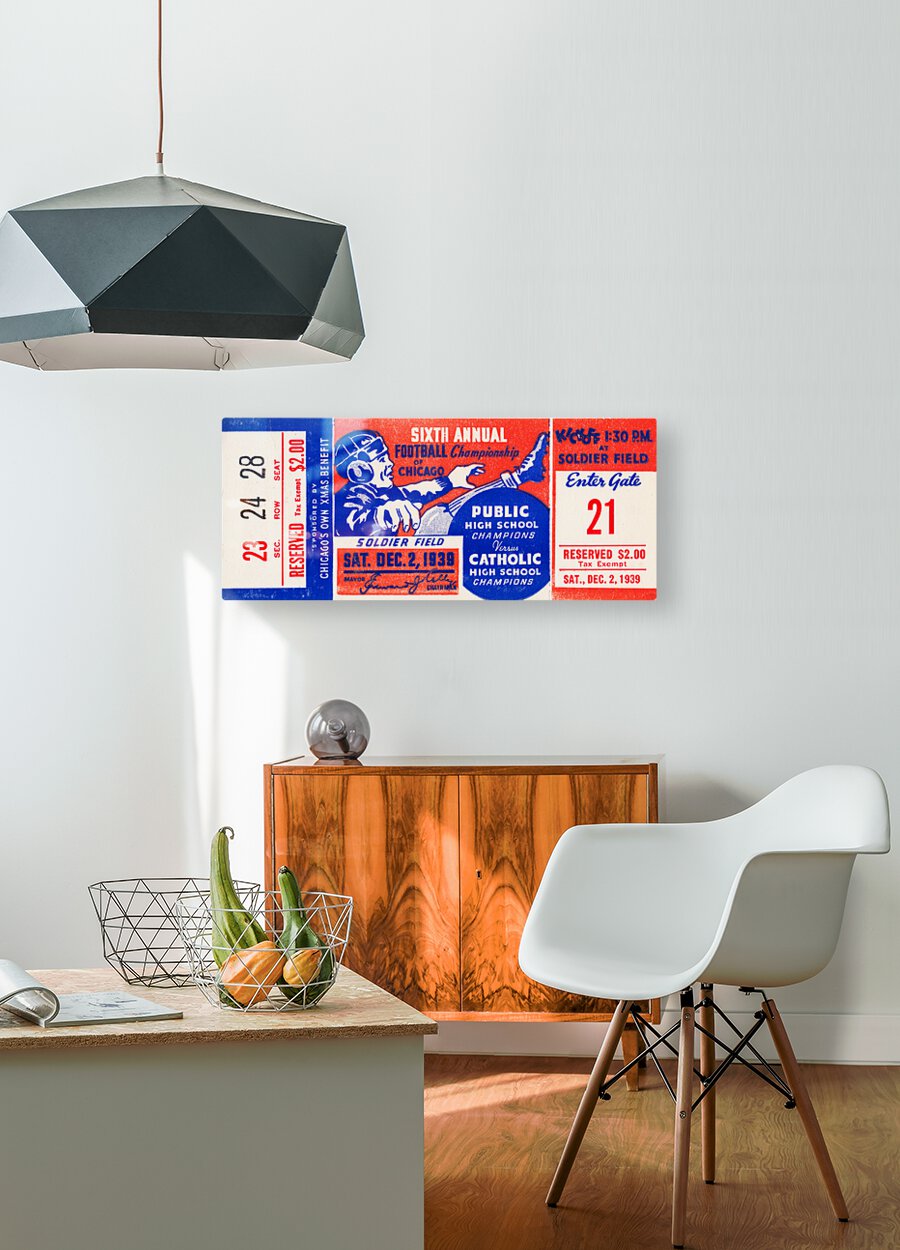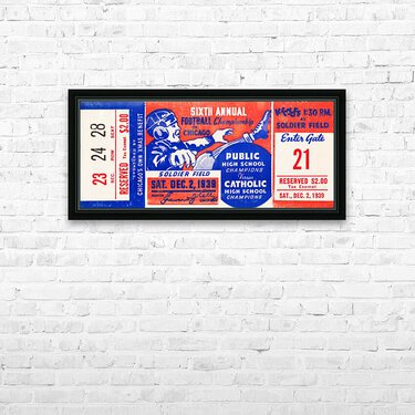 This digitally restored Prep Bowl (aka Kelly Bowl) 1939 Chicago Public Schools vs. Catholic Schools Championship Game football ticket stub art print will look fantastic in your game room or office. This Chicago high school championship game was so popular it once drew 120,000 fans to Soldier Field in 1937. (Chicago Trube Article, November 27, 2020 by Tina Akouris)