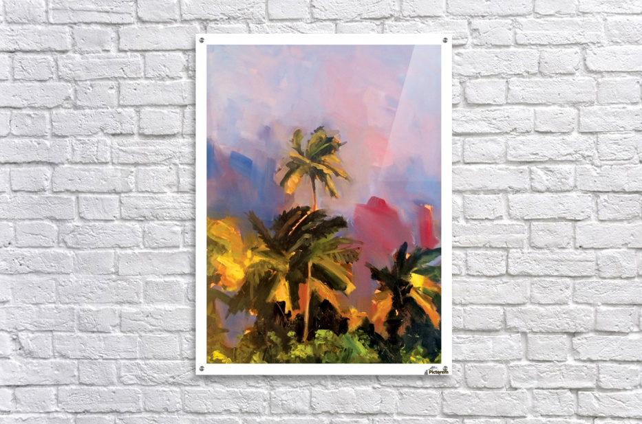 Palms is a high quality 9" x 12" print of Hal Sadlers original oil painting. This print is made from 100% cotton smooth fine art paper, providing exceptional ink handling and sharpness. The archival acid and lignin-free paper offers a broad range of colors, natural contrast, and a high ink load.
