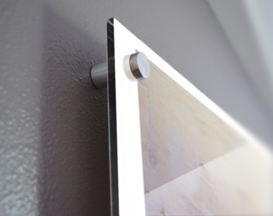 Printed to the edge - Ready to hang - provided with 4 premium polished aluminum stand off ( wall screws and mounting hardware provided )