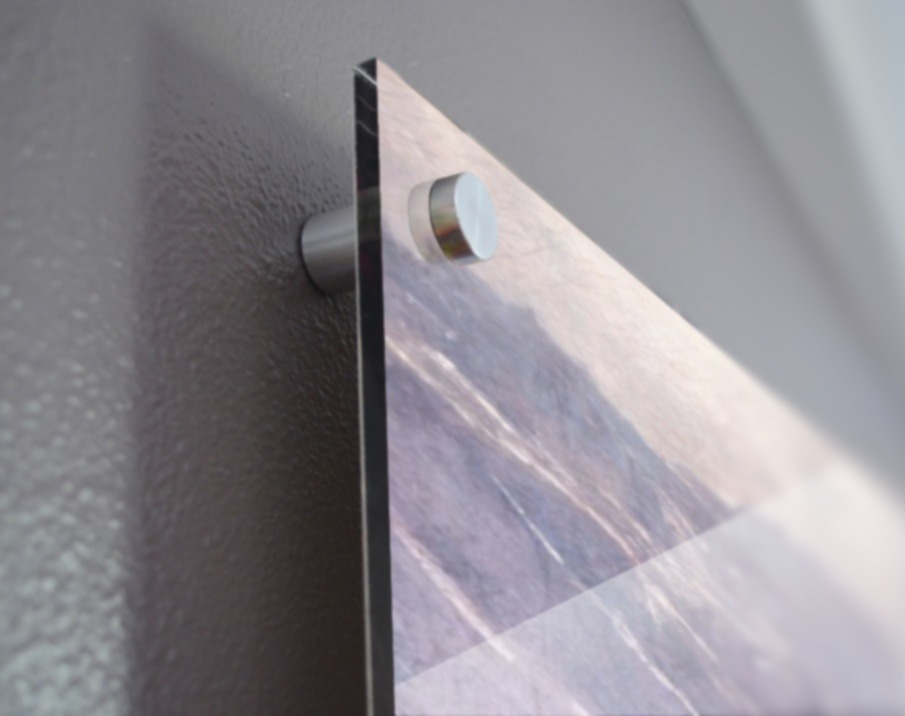 Printed to the edge - Ready to hang - provided with 4 premium polished aluminum stand off ( wall screws and mounting hardware provided )