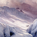Gabriel Loppé (1825–1913) was a French painter, photographer and mountaineer. He became the first foreigner to be made a member of the Alpine Club in London. His father was a captain in the French Engineers and Loppés childhood was spent in many different towns in south-eastern France. Aged twenty-one Loppé climbed a small mountain in the Languedoc and found a group of painters sketching on the summit. He had found his calling and subsequently went off to Geneva where he met the reputed leading Swiss landscapist, Alexandre Calame (1810 -1864). Loppé took up mountaineering in Grindelwald in the 1850s and made friends easily with the many English climbers in France and Switzerland. Although he was frequently labelled as a pupil of Calame and his rival Francois Diday, Loppé was almost an entirely self-taught artist. He became the first painter to work at higher altitudes during climbing expeditions earning the right to be considered the founder of the peintres-alpinistes school, which became established in the Savoie at the turn of the nineteenth century. Notable followers of Loppé include, Charles Henri Contencin (1875 -1955) and Jacques Fourcy (1900 -1991). Together with the first ascent of Mt Mallet in Chamonix’s Grandes Jorasses range, Loppé made over forty ascents of Mont Blanc during his climbing career, which lasted until the late 1890s. He frequently made oil sketches from alpine summits, including a panorama of the view from the summit of Mont Blanc. His paintings became celebrated for their atmosphere and spontaneity and he soon found himself taking part in many exhibitions in London and in Paris. By 1896 Loppé had spent over fifty seasons climbing and painting in Chamonix. As the valley’s unrivalled ‘Court painter’ his work was in constant demand with the majority of his pictures going to English climbers and summer tourists.