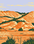 WPA Poster Art of North Dakota Badlands in Theodore Roosevelt National Park located in Medora North Dakota done in works project administration style ...[+]