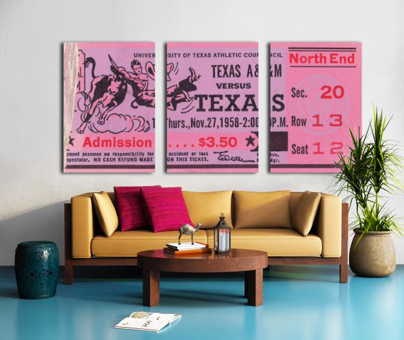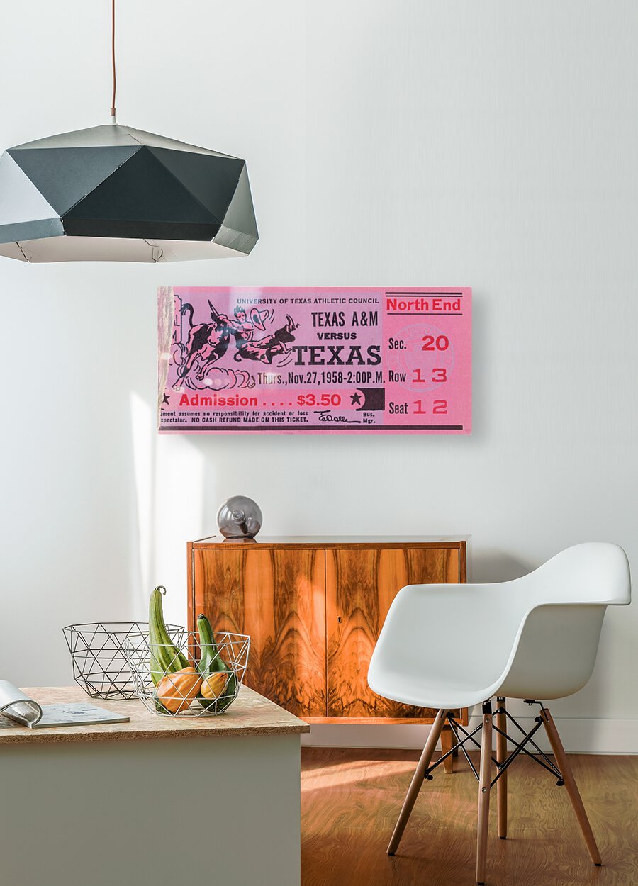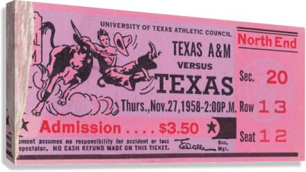1958 TEXAS AM VS. TEXAS LONGHORNS FOOTBALL TICKET ART ROW ONE BRAND  Canvas Print