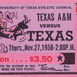 1958 TEXAS AM VS. TEXAS LONGHORNS FOOTBALL TICKET ART