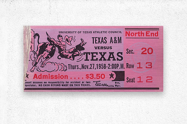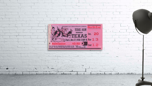 Get this artwork "1958 Texas AM vs. Texas Longhorns Football Ticket Art" in a framed print.