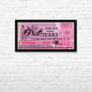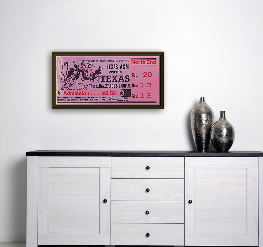 1958 Texas AM vs. Texas Longhorns Football Ticket Art Wall Decor Frame