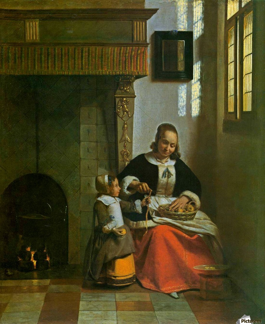 WOMAN PEELING APPLES PIETER DE HOOCH  Canvas Print