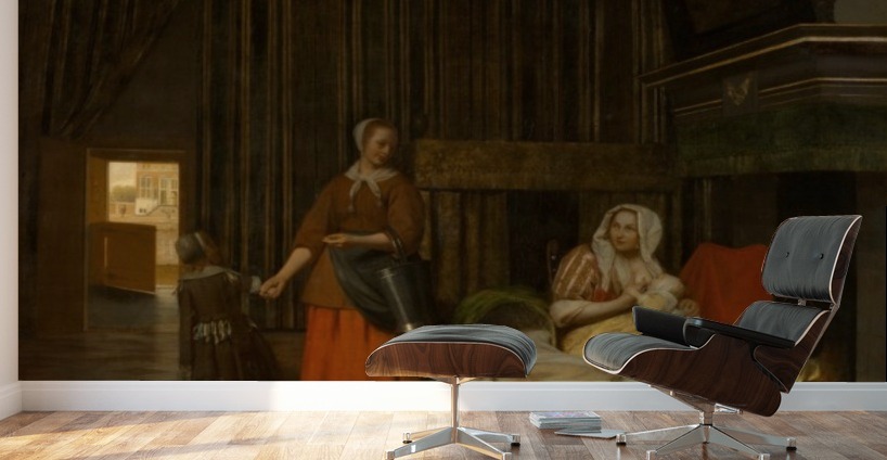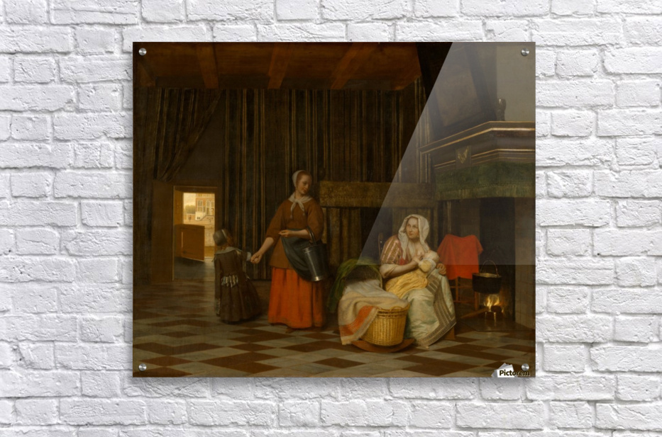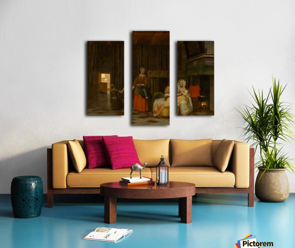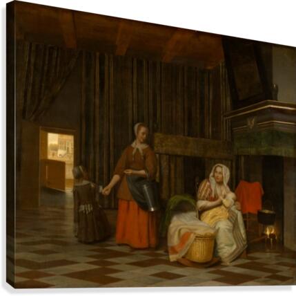 WOMAN AND CHILD WITH SERVING MAID PIETER DE HOOCH  Canvas Print