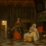 De Hooch was born in Rotterdam to Hendrick Hendricksz de Hooch, a bricklayer, and Annetge Pieters, a midwife. He was the eldest of five children and outlived all of his siblings. Little is known of his early life and most archival evidence suggests he worked in Rotterdam, Delft, and Amsterdam. According to his first biographer Arnold Houbraken, he studied art in Haarlem under the landscape painter Nicolaes Berchem at the same time as Jacob Ochtervelt and was known for his "kamergezichten" or "room-views" with ladies and gentlemen in conversation. But De Hoochs work seems to continue in the spirit of Hendrik Sorgh, an older Rotterdam painter who had a special affinity for organizing figures in interiors. Beginning in 1650, he worked as a painter and servant for a linen-merchant and art collector named Justus de la Grange in Rotterdam. His service for the merchant required him to accompany him on his travels to The Hague, Leiden, and Delft, to which he moved in 1652. It is likely that de Hooch handed over most of his works to la Grange during this period in exchange for board and other benefits, as this was a common commercial arrangement for painters at the time, and a later inventory recorded that la Grange possessed eleven of his paintings.