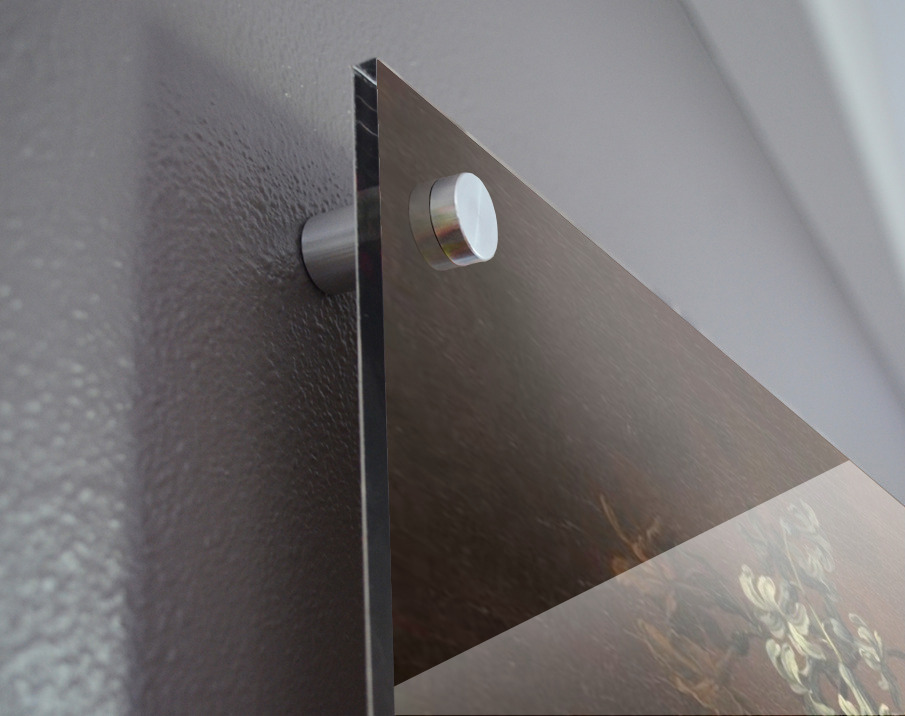Printed to the edge - Ready to hang - provided with 4 premium polished aluminum stand off ( wall screws and mounting hardware provided )
