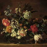 Jean-Baptiste Monnoyer (12 January 1636 – 20 February 1699) was a Franco-Flemish painter who specialised in flower pieces. He was attached to the Gobelins tapestry workshops and the Beauvais tapestry workshops, too, where he produced cartoons of fruit and flowers for the tapestry-weavers, and at Beauvais was one of three painters who collaborated to produce cartoons for the suite The Emperor of China. He was born at Lille, but was in Paris by 1650, where he was documented working on the decors of the Hôtel Lambert. He was taken up by Charles Le Brun for decorative painting at the Château de Marly and at the Grand Dauphins residence, the Château de Meudon. He was received at the Académie Royale de Peinture et de Sculpture in 1665 with a piece of the genre that he made his specialty, a still life of flowers and fruit combined with objets dart. His only appearance at the Paris salon was in 1673, when four paintings of flowers were exhibited by "M. Baptiste".
