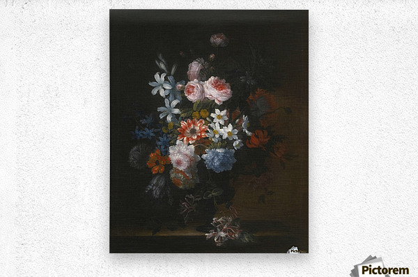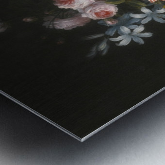 Still life of roses, honeysuckle, lillies, chrysanthemums, narcissi and other flowers in a vase  HD Metal print with Floating Frame on Back
