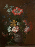 Jean-Baptiste Monnoyer (12 January 1636 – 20 February 1699) was a Franco-Flemish painter who specialised in flower pieces. He was attached to the Gobelins tapestry workshops and the Beauvais tapestry workshops, too, where he produced cartoons of fruit and flowers for the tapestry-weavers, and at Beauvais was one of three painters who collaborated to produce cartoons for the suite The Emperor of China. He was born at Lille, but was in Paris by 1650, where he was documented working on the decors of the Hôtel Lambert. He was taken up by Charles Le Brun for decorative painting at the Château de Marly and at the Grand Dauphins residence, the Château de Meudon. He was received at the Académie Royale de Peinture et de Sculpture in 1665 with a piece of the genre that he made his specialty, a still life of flowers and fruit combined with objets dart. His only appearance at the Paris salon was in 1673, when four paintings of flowers were exhibited by "M. Baptiste".