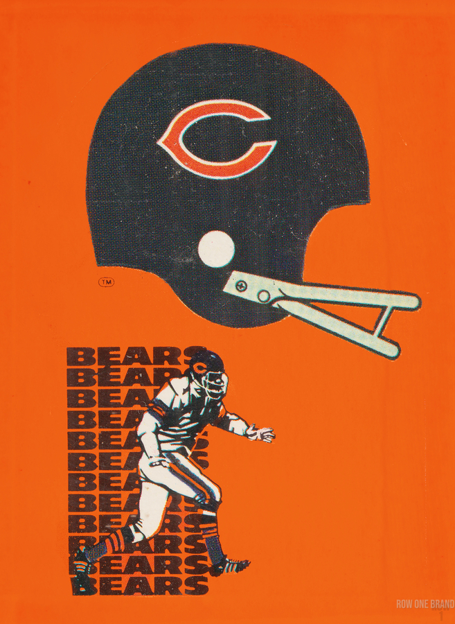 Created from authentic 1976 Chicago Bears memorabilia in our collection, this Row One Brand vintage Chicago Bears helmet and player art will look fantastic in your game room or office. Derivative art © 2022 Row One Brand Row One Brand historic football art prints are not affiliated with, licensed, sponsored, authorized, or endorsed by any team, league, other artist, athlete, other brand, or any licensing entity. Only non-copyrighted memorabilia and art with expired copyrights are used by Row One to create our historic football prints. This memorabilia art is part of Row One Brand's historic sports art collection and may not be used for commercial purposes without permission from Row One. The contents of this website are copyright protected and punishable by federal law up to $150,000 for willful infringement. For use on social media, a blog or news, please credit Row One Brand.