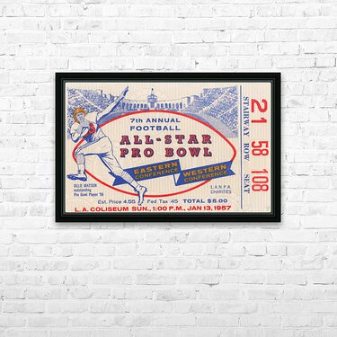 1957 Pro Bowl Football Ticket Canvas Picture Frame Printing