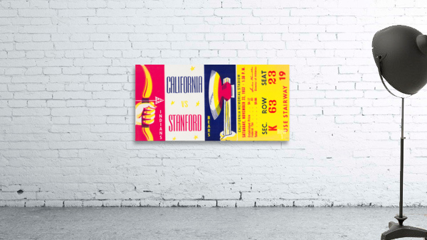 In this 1952 college football game, the Cal Bears beat the Stanford Indians 26-0 at California Memorial Stadium in Berkeley. Digitally restored for vivid color, this Row One Brand vintage 1952 Cal Bears football ticket print will look fantastic in your game room or office. Row One Brand historic college football ticket stub art prints are not affiliated with, licensed, sponsored, authorized, or endorsed by any college, university, team, league, other artist, athlete, other brand, or any licensing entity. Only non-copyrighted tickets and ticket stubs with expired copyrights are used by Row One to create our historic ticket prints. This ticket stub memorabilia art is part of Row One Brand's historic sports ticket stub art collection. The contents of this website are copyrighted and punishable by federal law up to $150,000 for willful infringement. For use on social media, a blog or news, please credit Row One Brand