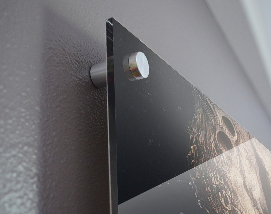 Printed to the edge - Ready to hang - provided with 4 premium polished aluminum stand off ( wall screws and mounting hardware provided )