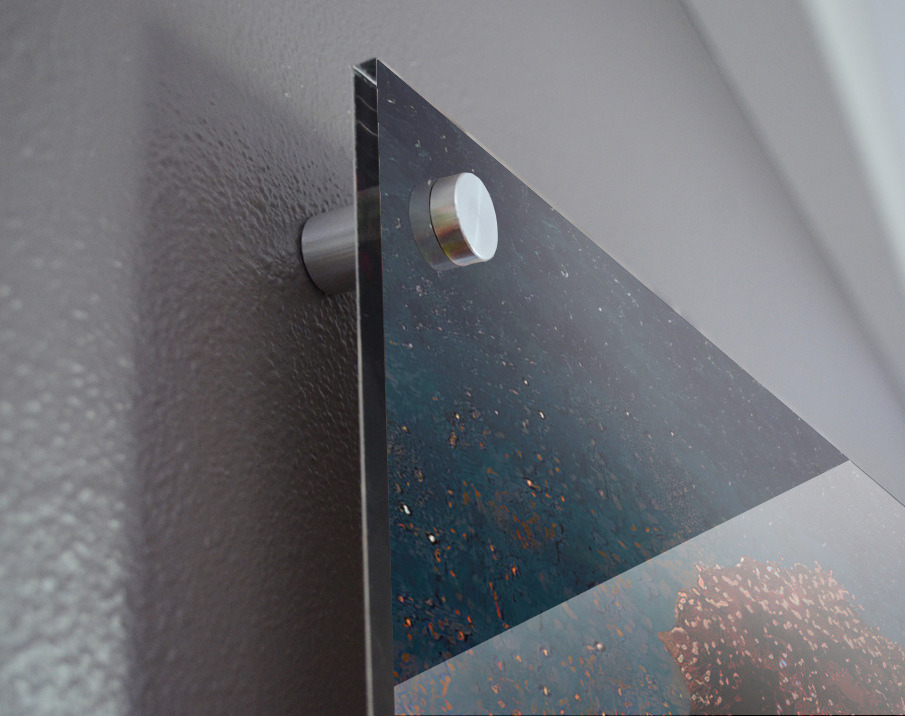 Printed to the edge - Ready to hang - provided with 4 premium polished aluminum stand off ( wall screws and mounting hardware provided )