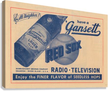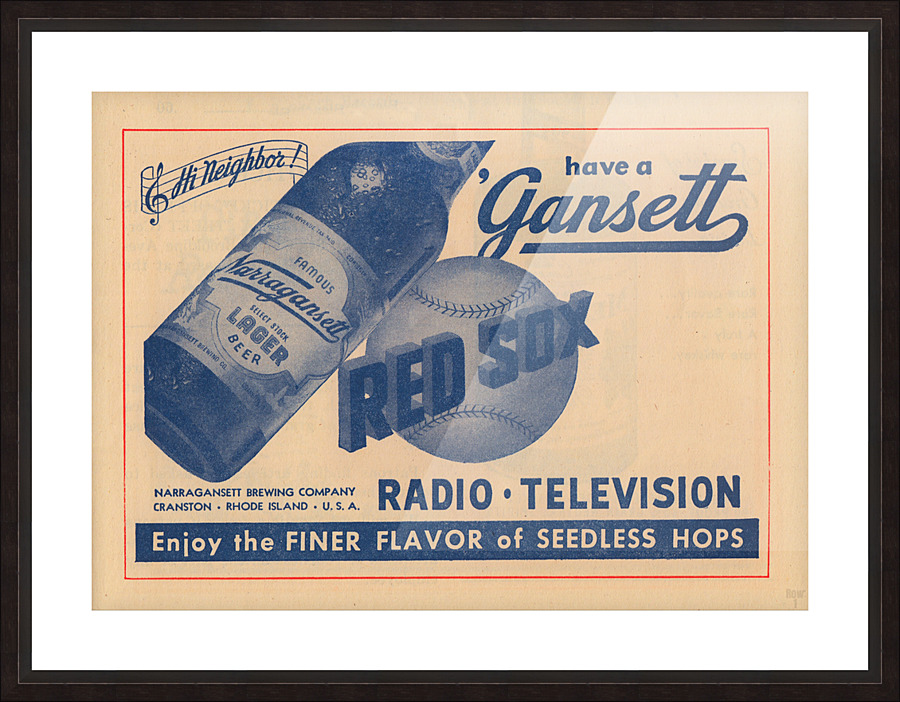 Row One Brand's 1951 Narragansett Beer advertisement print will look fantastic in your game room or office. Row One Brand historic gameday ad prints are not affiliated with, licensed, sponsored, authorized, or endorsed by any team, league, other artist, athlete, other brand, or any licensing entity. Only non-copyrighted ads and ads with expired copyrights are used by Row One to create our historic prints. This advertisement is part of Row One Brand's historic sports ad collection and may not be used for commercial purposes without permission from Row One. The contents of this website are copyright protected and punishable by federal law up to $150,000 for willful infringement. For use on social media, a blog or news, please credit Row One Brand. This art was created from an ad published in 1951 with no copyright notice.