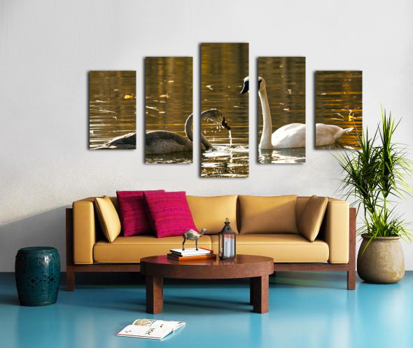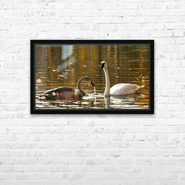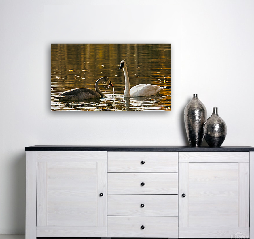 WHITE AND GRAY SWANS BRUCE BROWN  Canvas Print