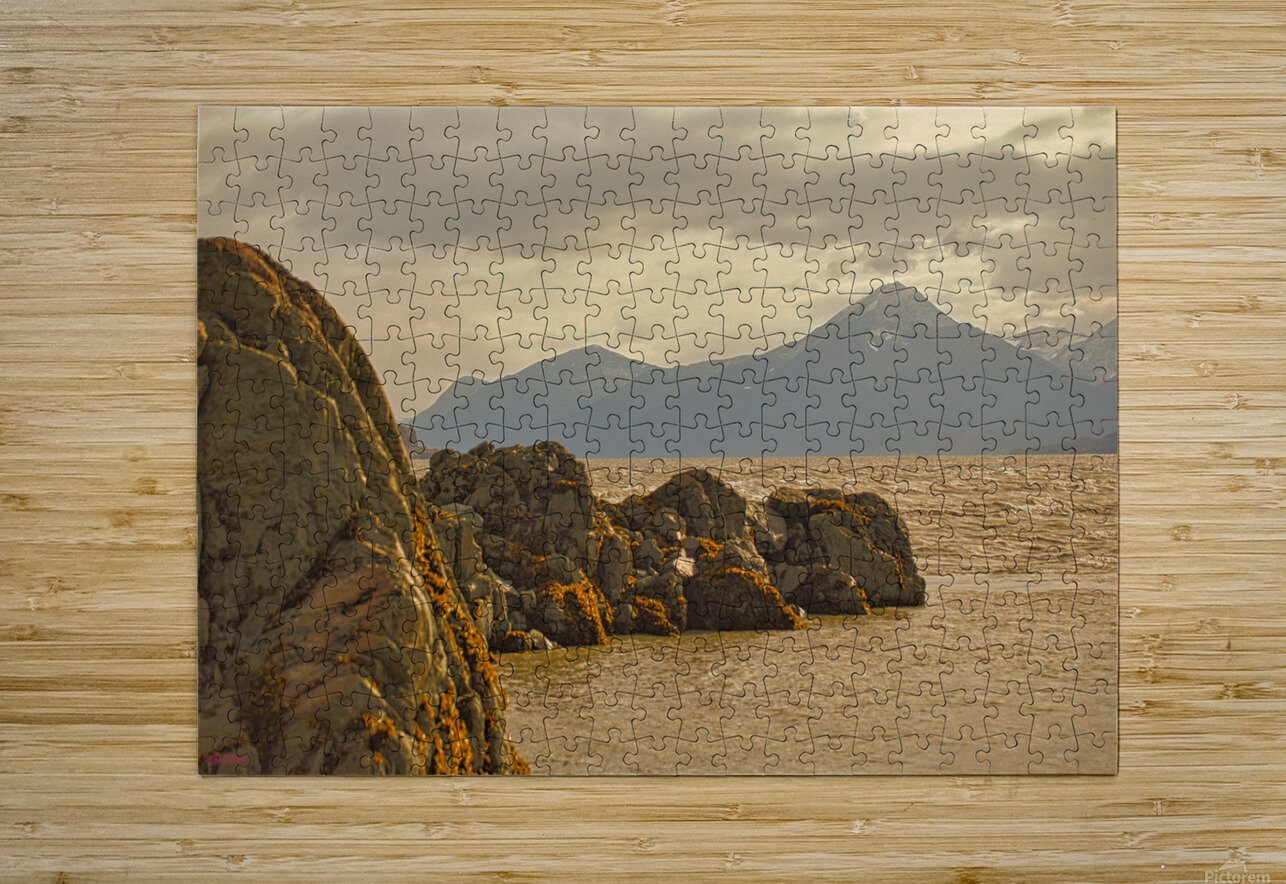 Taken from Beluga Point South of Anchorage, Alaska. Cross over the railroad tracks and go between the rock outcroppings at low tide.