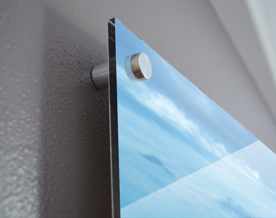Printed to the edge - Ready to hang - provided with 4 premium polished aluminum stand off ( wall screws and mounting hardware provided )