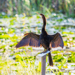 ANHINGA BIRD DRYING ITS FEATHERS IN EVERGLADES