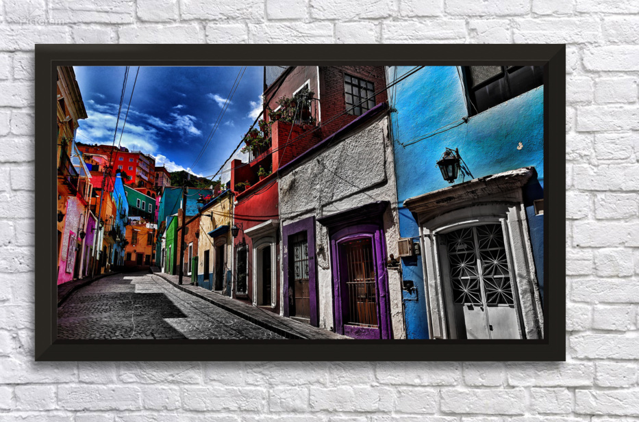 Cloudy day in a small colorful street of Guanajuato Mexico 2018.