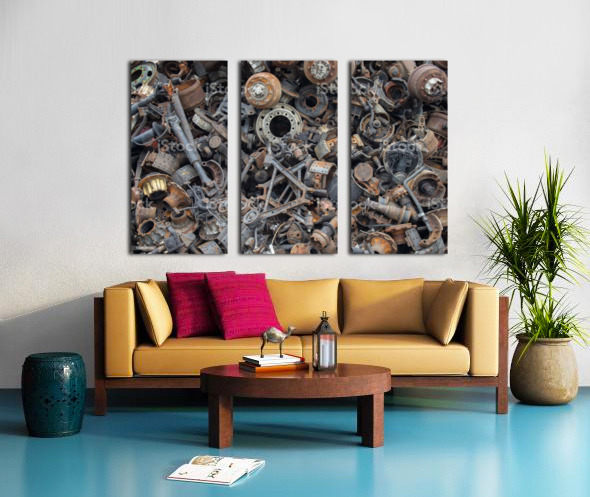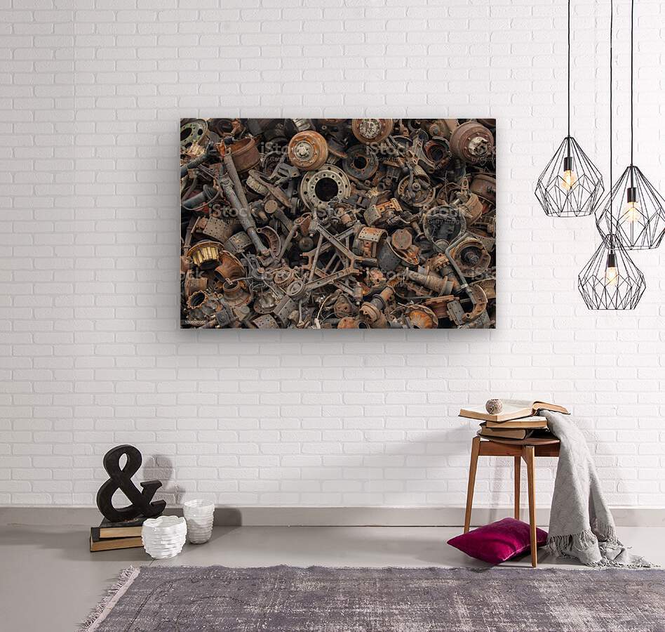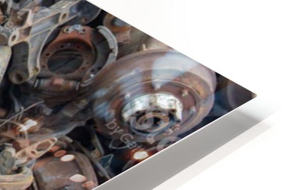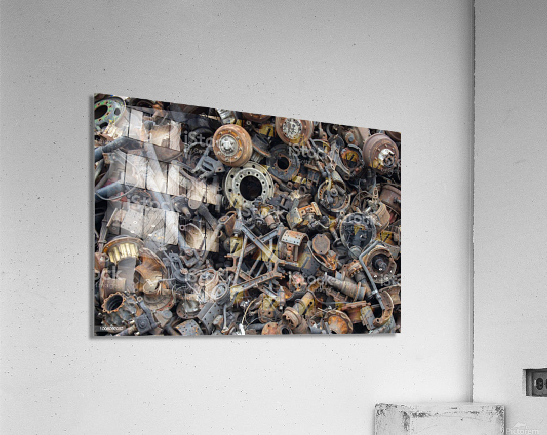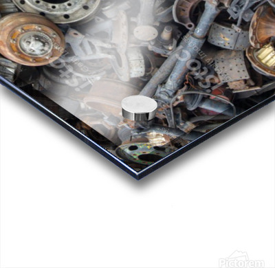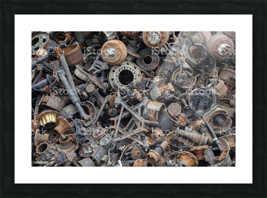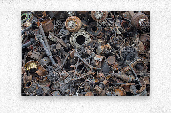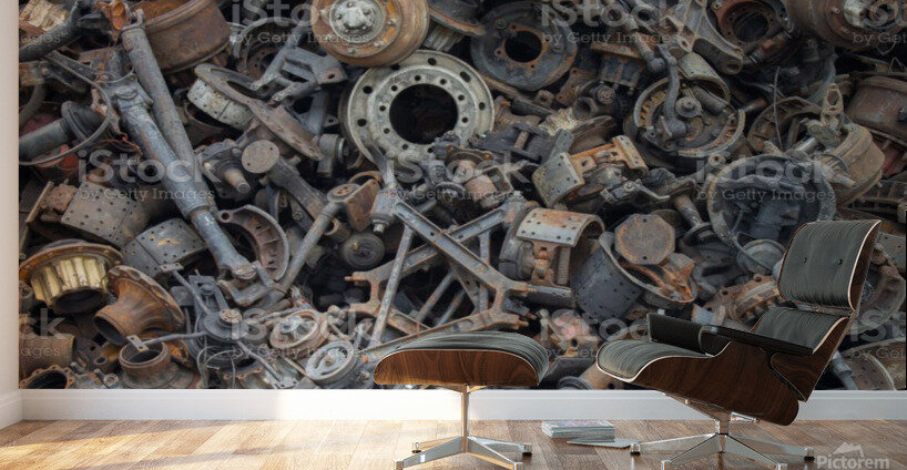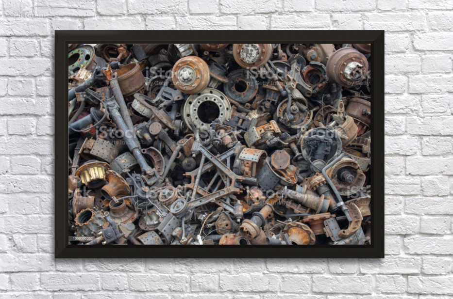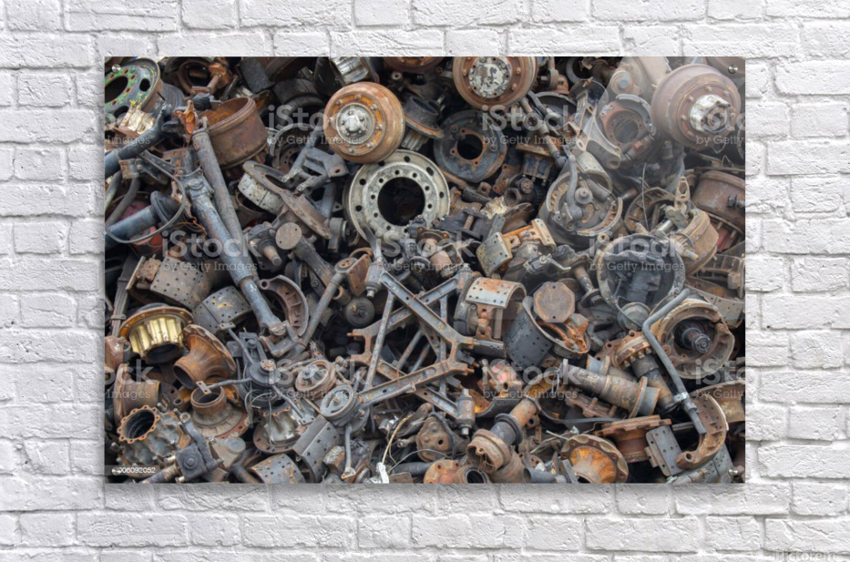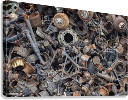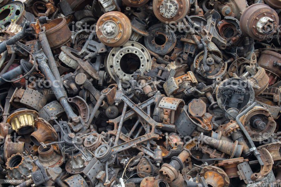 Old and rusty automotive parts are stacked together. Old and rusty iron scrap.