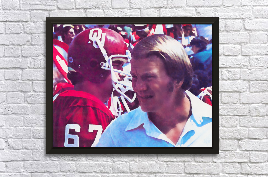 Get this artwork "1980 Oklahoma Sooners Barry Switzer Watercolor Art" in a framed print.