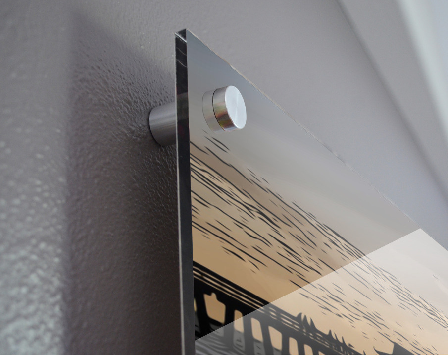 Printed to the edge - Ready to hang - provided with 4 premium polished aluminum stand off ( wall screws and mounting hardware provided )