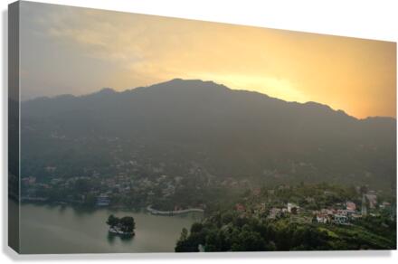 SUNRISE OVER HIMALAYAN TOWN OF BHIMTAL MEMORIES OVER MOCHA  Canvas Print