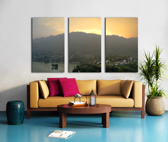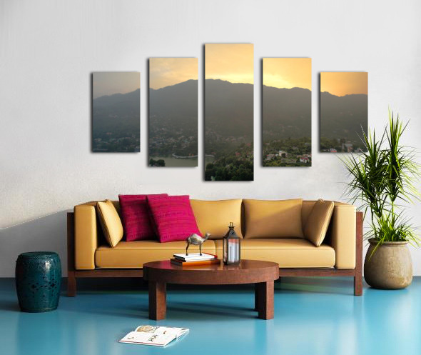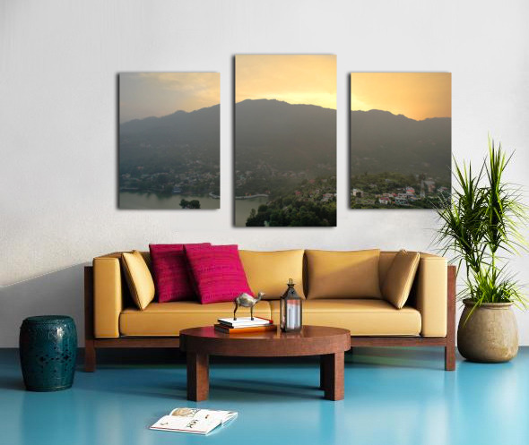 Sunrise over Himalayan town of Bhimtal Canvas print