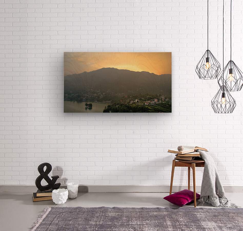 Sunrise over Himalayan town of Bhimtal  Wood print