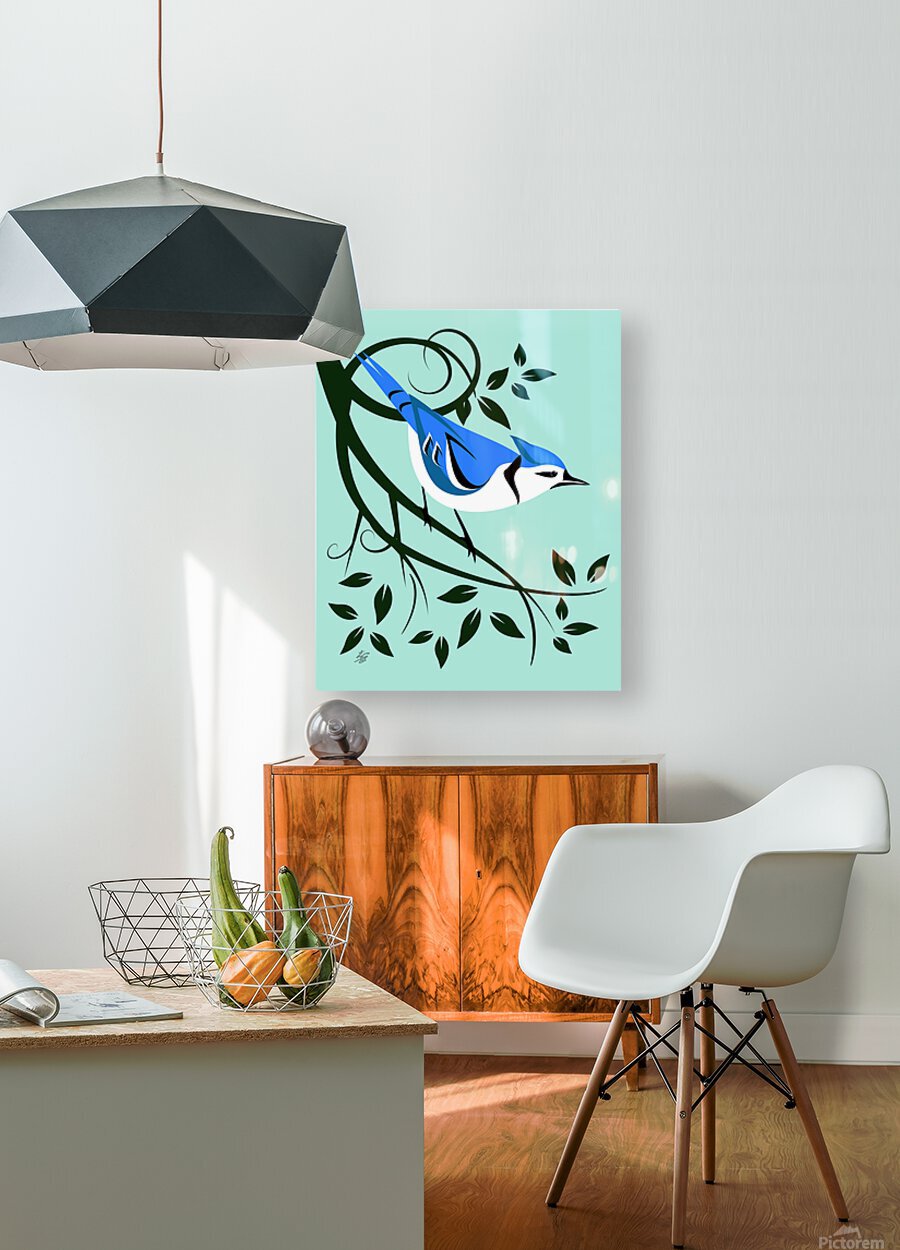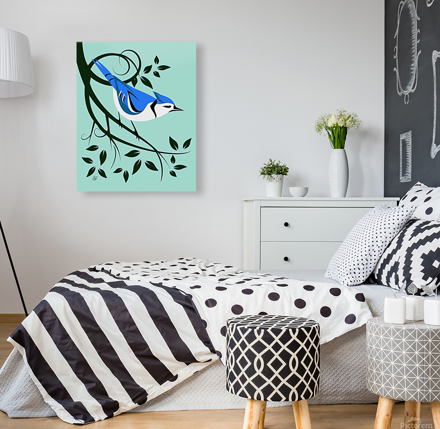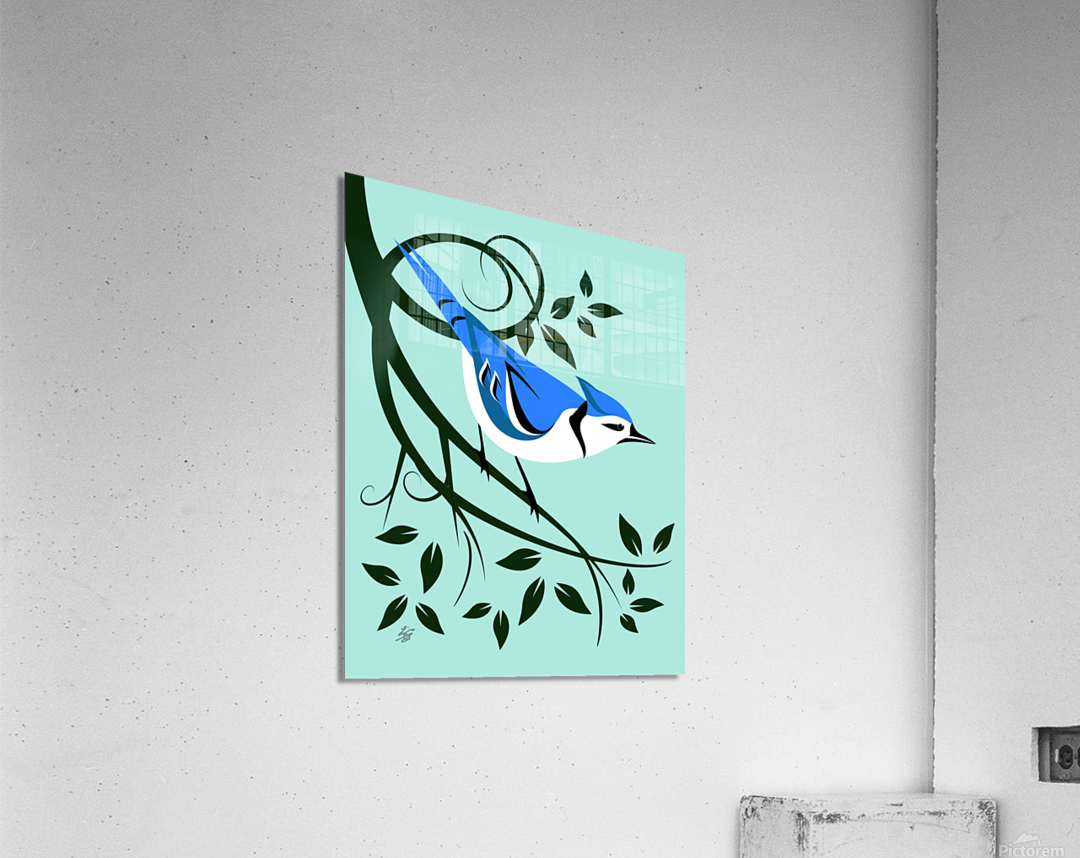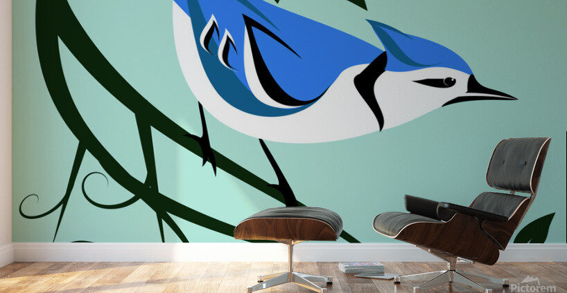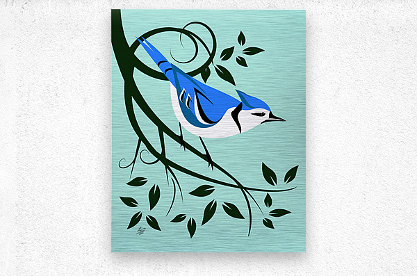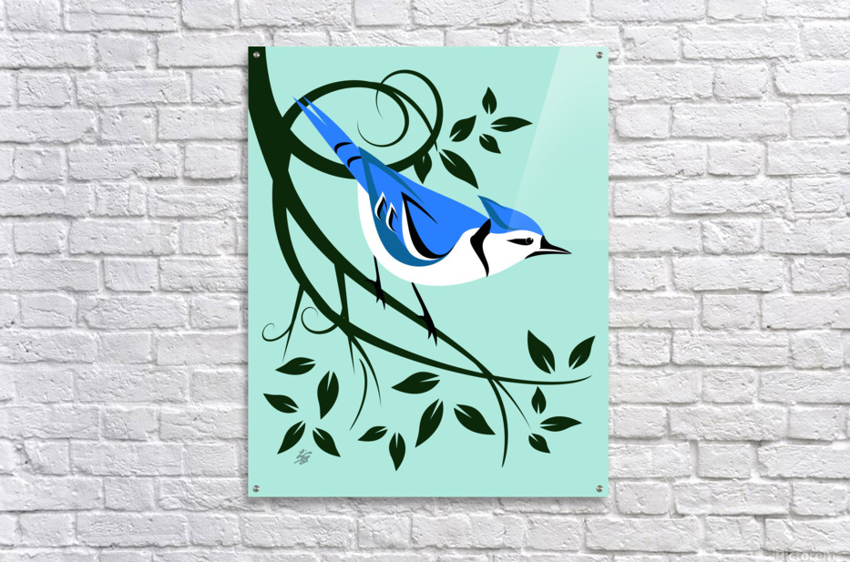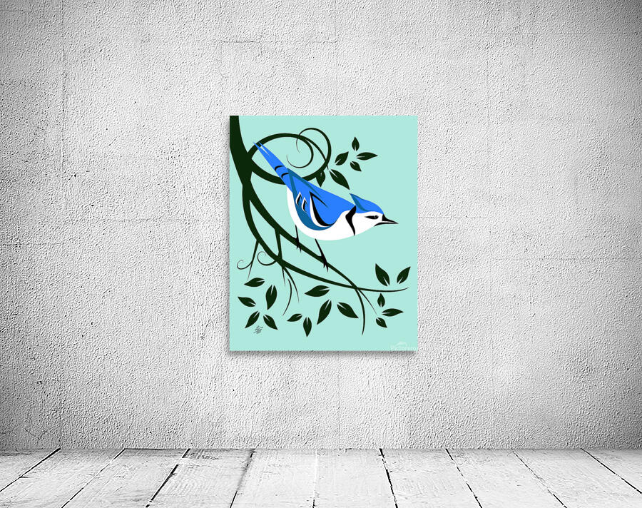 ABOUT THIS ARTWORK: STYLIZED BLUE JAY ON BRANCH