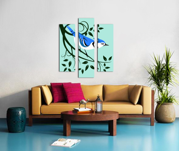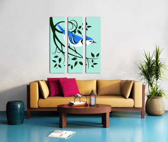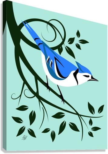 STYLIZED BLUE JAY ON BRANCH LIZ CEREBY  Canvas Print