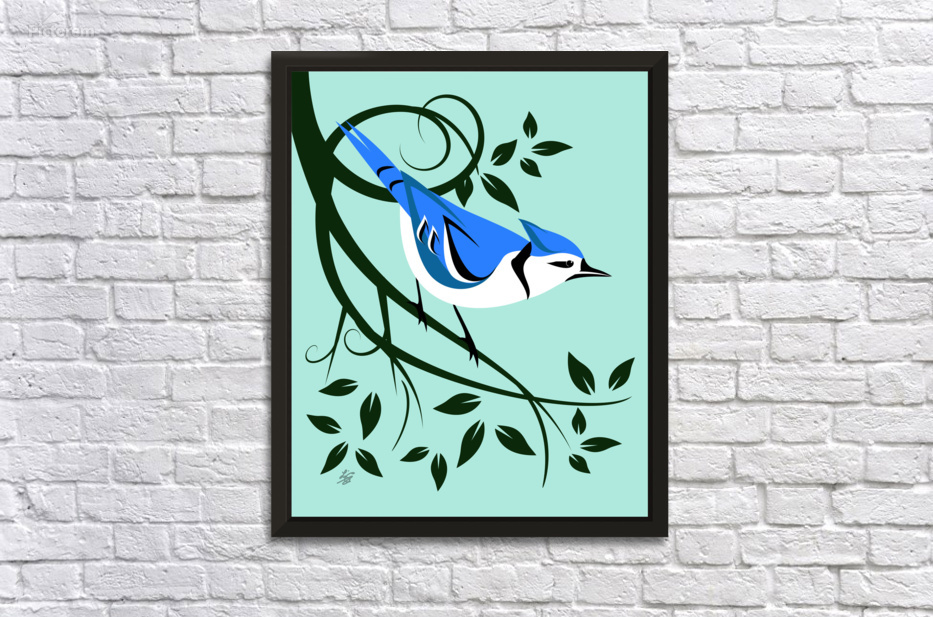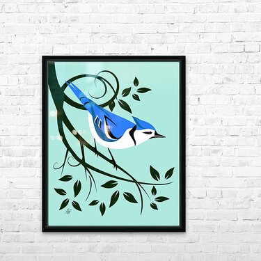 Get this artwork "Stylized Blue Jay On Branch" in a framed print.
