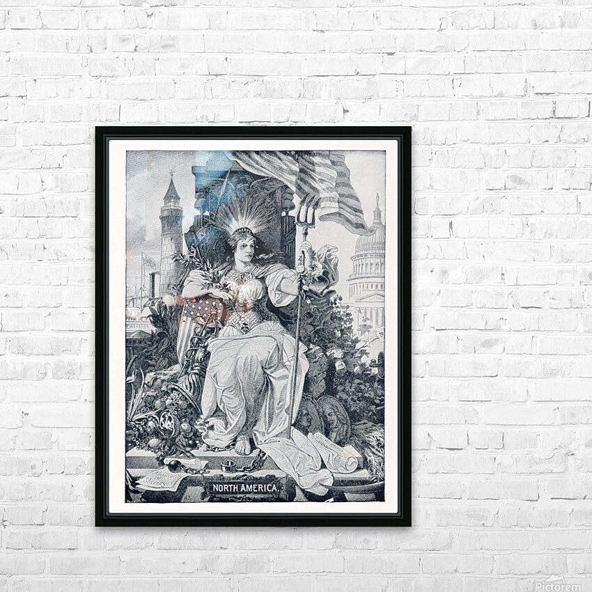 Artwork - Found and Restored - North America - 1888 Panorama of Nations - Antique Bookplate Print  HD Metal print with Floating Frame on Back