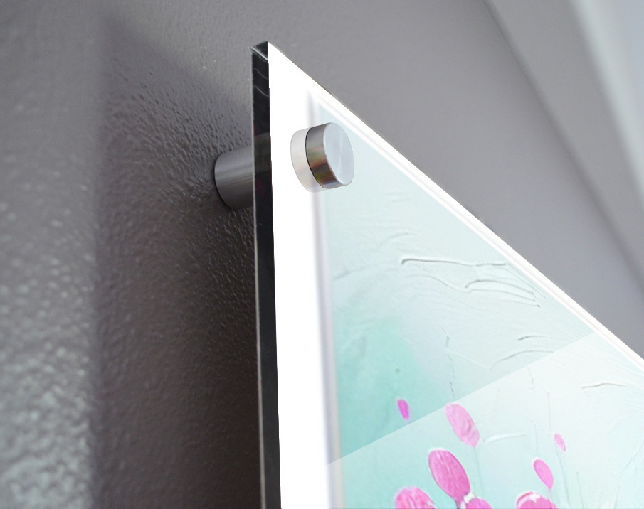 Printed to the edge - Ready to hang - provided with 4 premium polished aluminum stand off ( wall screws and mounting hardware provided )