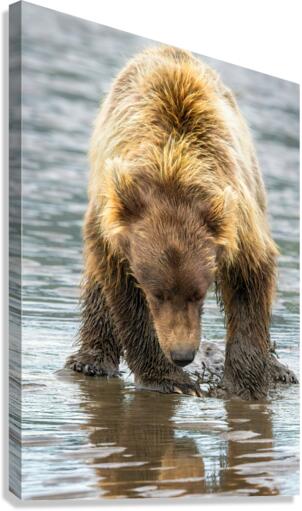 LAKE CLARK BEAR DIGGING FOR CLAMS REFLECTION KARA CAPALDO PHOTOGRAPHY  Canvas Print