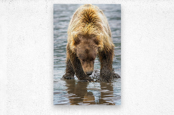 ABOUT THIS ARTWORK: LAKE CLARK BEAR DIGGING FOR CLAMS REFLECTION